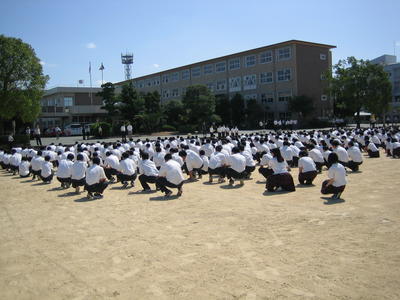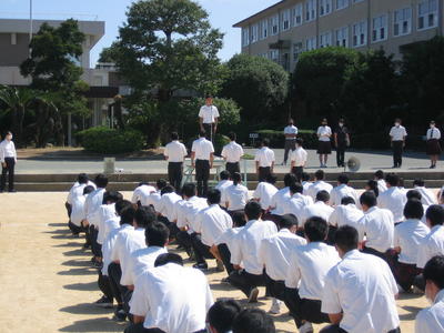 10月1日に中間考査終了後、グラウンドにて第63回全国高等学校選抜レスリング大会選手激励会が実施されました。