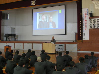 講師に「いのちをつなぐ会 代表理事 高濵伸一 先生」をお迎えして『いのちにありがとう』という題でお話して頂きました。生徒たちは真剣に聞いていのちの大切さを考えているようでした。