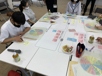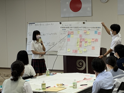 初日は玉名の『良いところ』、『悪いところ』を見つけることからスタートし、良いところを発展させる方法、悪いところを改善する方法について4つの班に分かれて意見を出し合い、発表をしました。