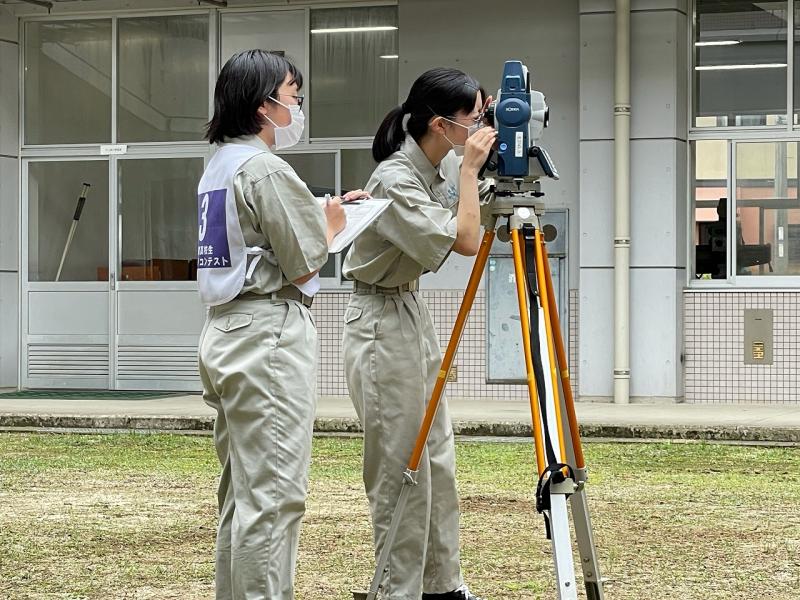 ・測量部門 敢闘賞 土木科3年 坂本要太さん、中尾文香さん、小路由衣さん