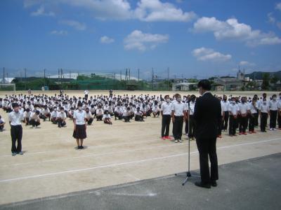 校長先生と生徒会長の石口怜音水さんから激励の言葉がありました。