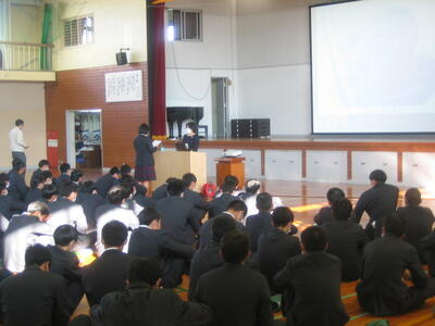 11月16日に1年生を対象に体育館にて命の教育講演会を実施しました。講師に医療法人慈恵病院 看護部長 竹部智子様をむかえ、「未来あるみなさんに伝えたいこと~産婦人科の現場から~」という演題で講演をしていただきました。