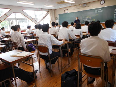 本日、5月21日(木)3年生の分散登校にあわせて、「3密」を徹底しながらSPI試験を実施しました。