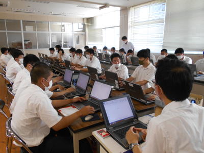 機械科3年ではパソコンスピード検定取得に向けて、タイピングの