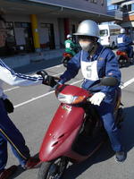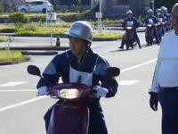 本校では交通安全教育の一環で2年生全員に原付バイク講習会を実施しています。