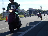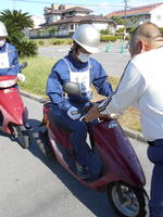 そのような中で本校も「乗せて指導」の方針の下原付バイク講習会を実施しています。20年近くなります。