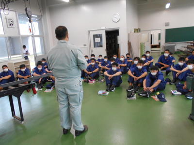 2年2組も機械実習が開始されました。昼からは30度を超える暑さの中