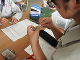 ドラフトチャンバー内で、銅粉に硝酸を加えます。