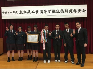 平成28年11月16日(水)に崇城大学で行なわれた熊本県工業高等学校生徒研究発表会において工業化学科が最優秀賞を受賞しました。