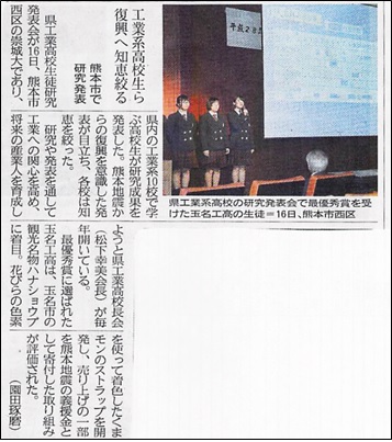 平成28年度熊本県産業教育振興会産学懇談会における生徒研究発表にて発表をしました。