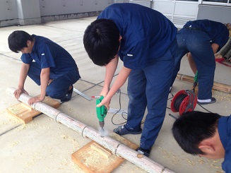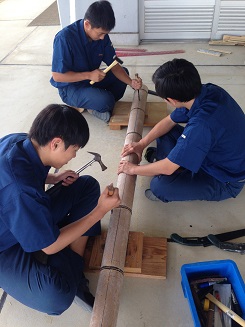 土木科では、毎年10月28日の繁根木八幡宮秋季大祭に竹灯籠を展示していますが、今年もその制作が進んでいます。毎年、改良を加え、皆さんに喜んで頂けることを願って、魂を込めて作業に取り組んでいます。