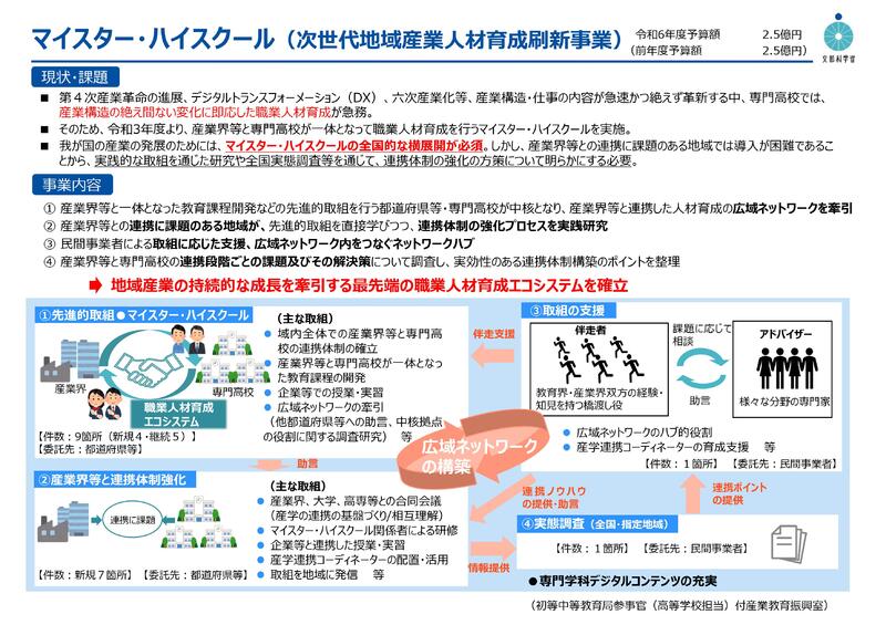 文部科学省の令和6年度マイスター・ハイスクール普及促進事業の採択 → こちら
