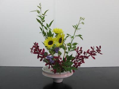 10月27日台湾の永平高級中学校の華道体験と並行して、個人作品の生け込みを行いました。