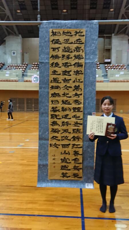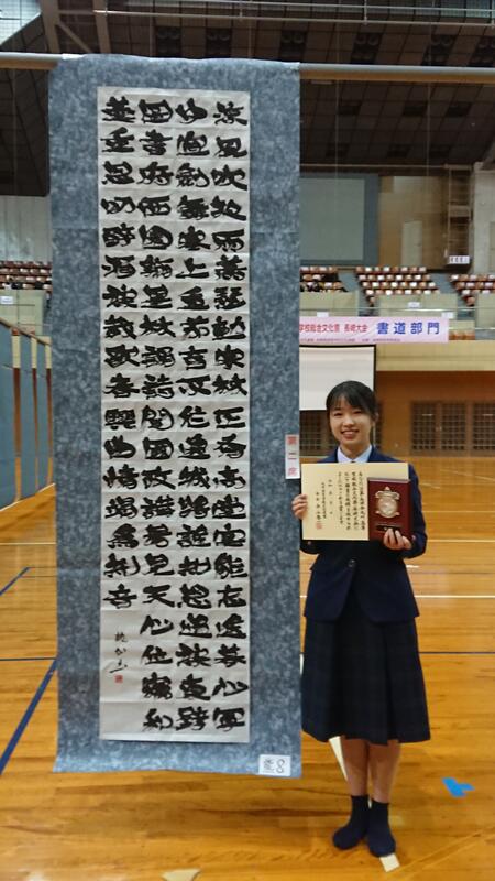 この度、全九州大会出場の功績により、2年小山さん、1年安楽さんが九州高等学校文化連盟賞を頂きました。書道だけでなく、今後も様々な面において探究心を高めていこうと思います。ありがとうございました。
