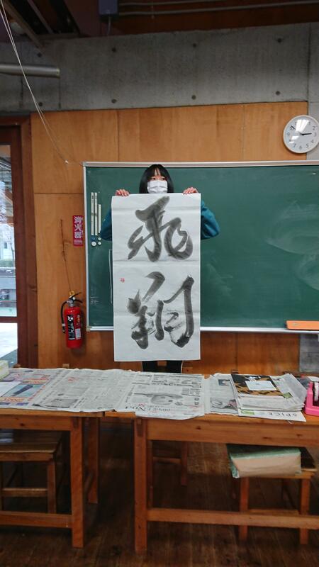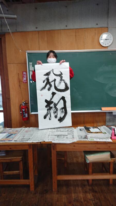 年末に行った小字数大会の審査が終わりました。今回は進路実現に向かう3年生応援企画として「飛翔」を揮毫しました。せっかくなので、上位三名の作品を共通テストまでの期間、昇降口に展示させていただきます。日陰になっている昇降口が、少し明るく晴れやかになれば幸いです。