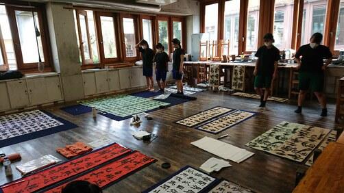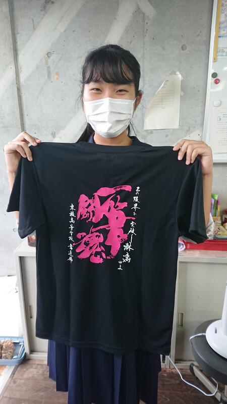 令和3年度の書道部Tシャツが完成しました。皆で文字の布置や文言を何度も練り直し、ようやく納得のいくTシャツができました。他校との交流による披露は今年は叶いませんが、紙面に向かう強い思いをTシャツに込めて、今後の揮毫大会、高書展に向かっていきたいと思います。23日には高等学校揮毫大会(各校実施)が控えています。全員で揃い錬成を継続するという難しさはありますが、それはどの学校も同じことと考え、一人一人が今できることに集中して揮毫大会に挑みたいと思います。
