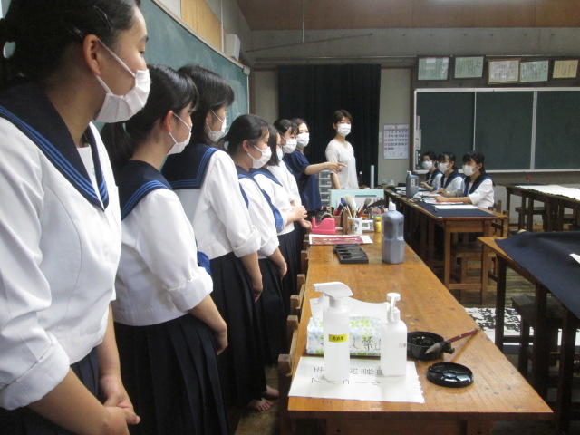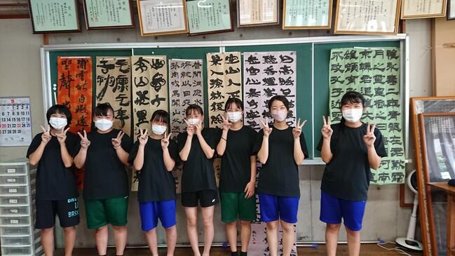 毎年の熊本県総合文化祭では展示部門に出品をしたり、受付をしたり、他校の素晴らしい作品群を目にする貴重な機会を得ていました。今年は展示は中止となりましたが、コロナ禍にあっても東稜高校書道部はその手を止めていません。