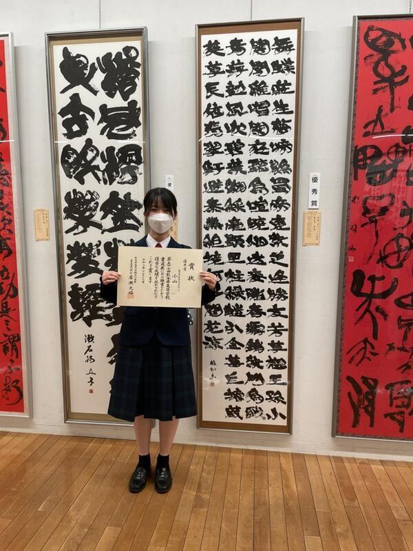 12月19日(日)県立美術館分館で高校書道展の表彰式が行われ、優秀賞を受賞した2年小山さんが参加しました。