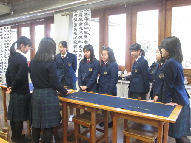 現在書道部は、11月30日締切の高校書道展と12月10日から長崎で行われる全九州総文に向かって、追い込みの時期に入っています。締切までは学校行事や模試、考査等が入りますが、時間や生活のマネジメントを心がけ、集中した確実な錬成を心がけています。