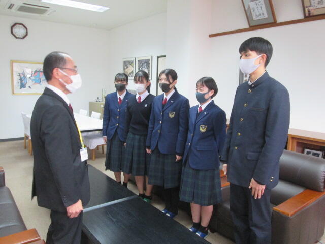 3月24日(水)~26日(金)東京、渋谷の東京体育館で行われる、全国高校選抜大会空手競技男子団体形に出場する空手道部員があいさつに伺いました。