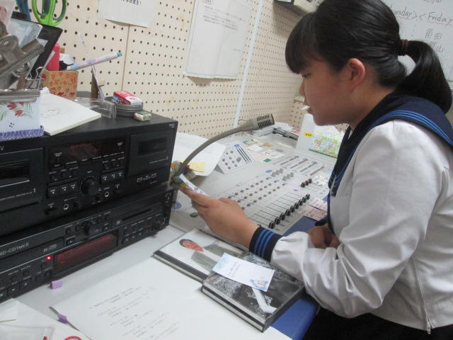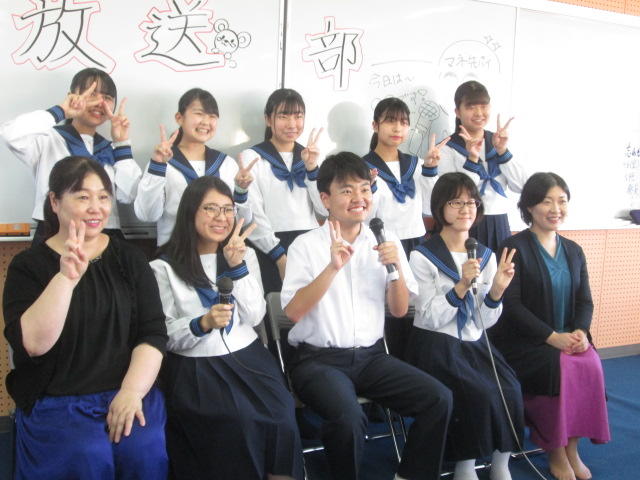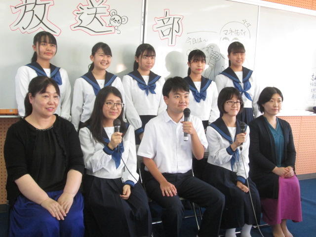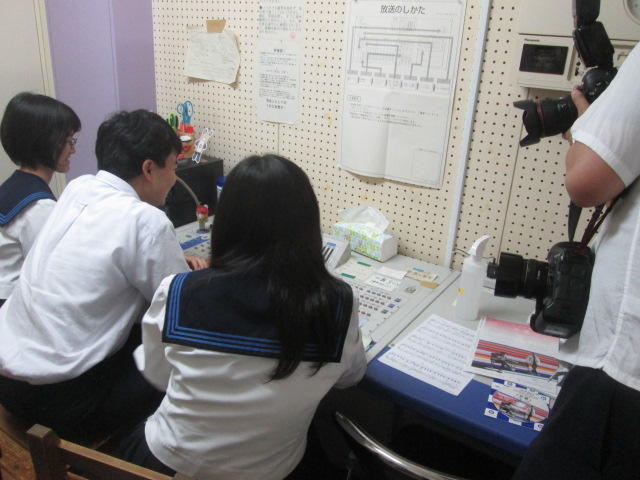 写真は、放送部2年の水本さん、木村さん、1年の嶋田さん。