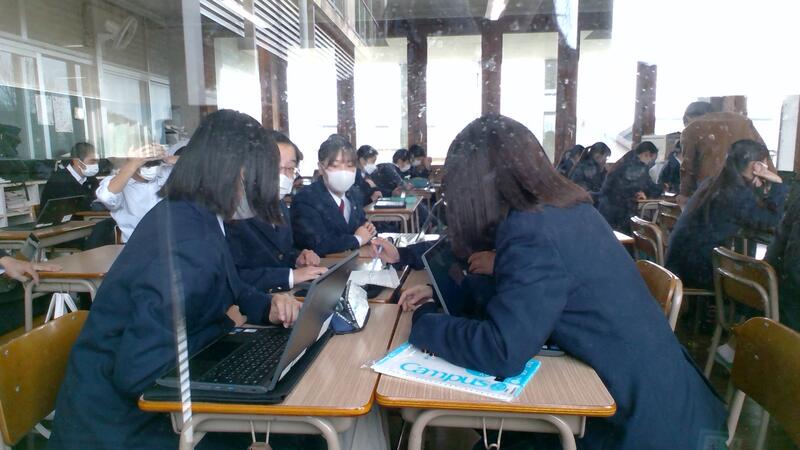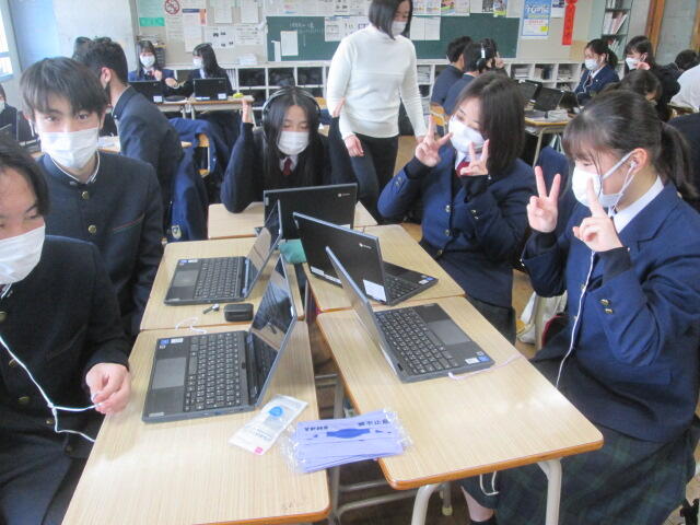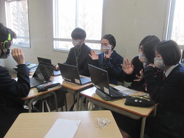 3月11日(金)国際コース2年生が台湾新北市立永平高級中学校の生徒とオンラインで交流会を行いました。昨年11月12日(金)以来の交流会です。グループに分かれ、自己紹介を行い、それぞれのテーマで台湾と日本の紹介や意見を交換し合いました。だんだんと交流が深まってきました。