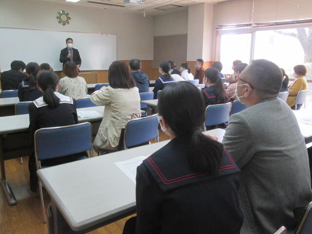 3月25日(金)合格者説明会を行いました。事務部、教務部、生徒指導部、体育科、育友会から説明を行いました。春休み期間中、新年度の準備をしっかりとされて、4月8日(金)の御入学を心待ちにしています。