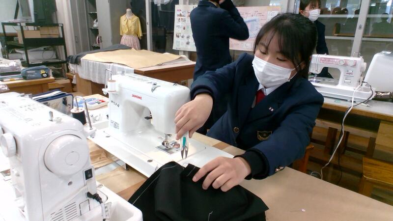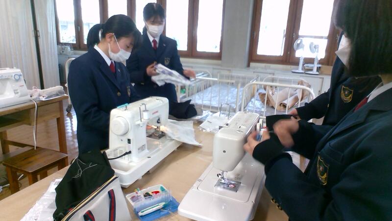 3月10日(木)、家庭基礎の授業ではミシンやアイロンを使った実習を行いました。