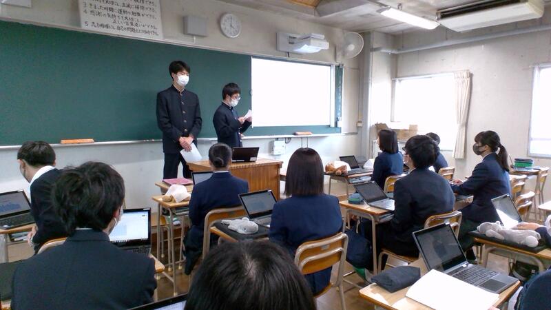 3月22日(火)7限、1年生の総合的な探究の時間では、各HRで「プレ課題研究」の発表会に取り組みました。