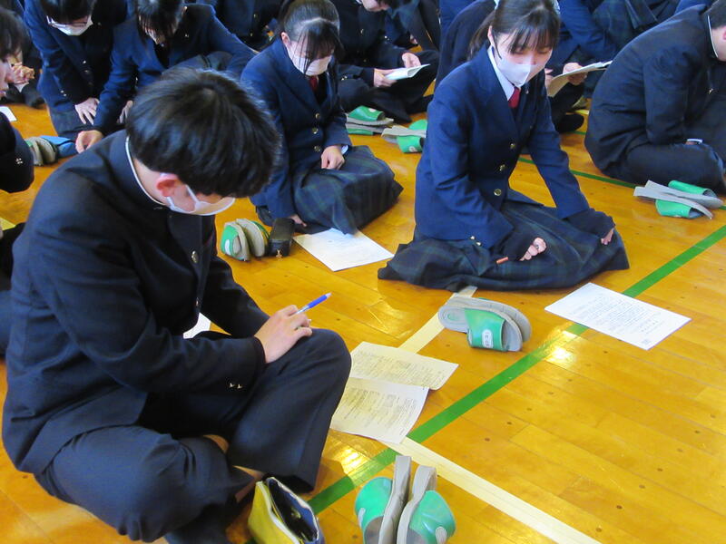 道路交通法に関するルールの確認を具体的に行っていただき、生徒たちはそれぞれしっかりと確認を行うことができました。