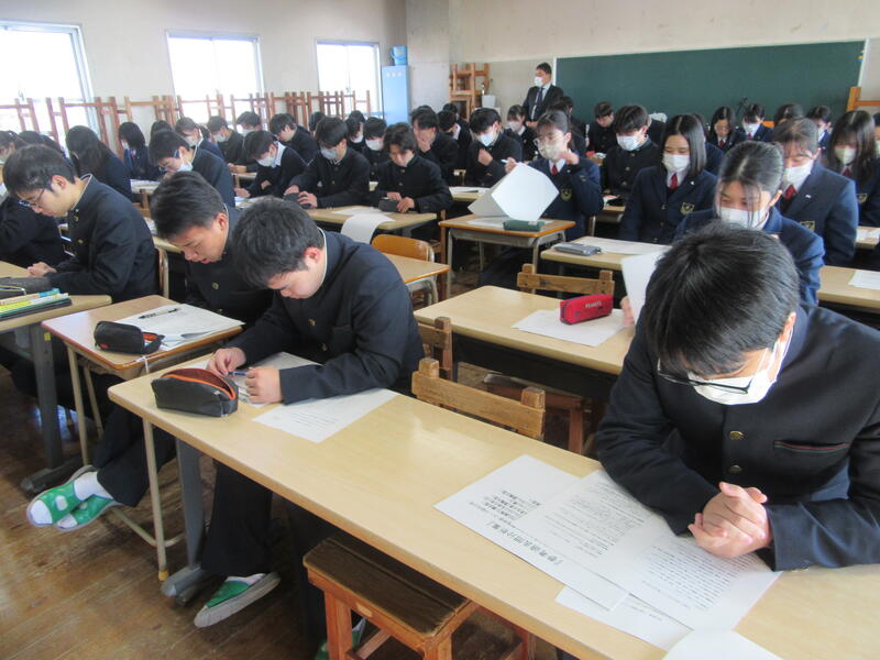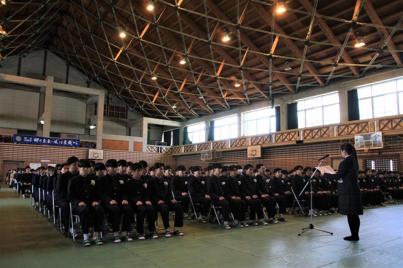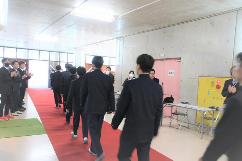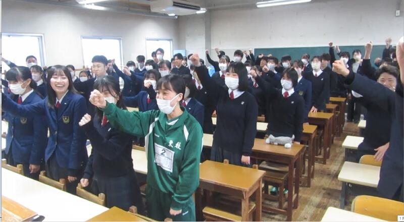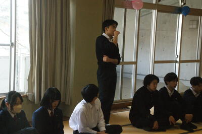 そこで、2月22日の昼休みに、試験に出発する生徒に対して激励会を行いました。