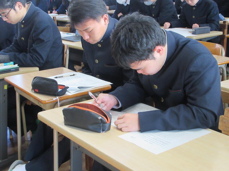 3年生は現在、特別授業を受講しており、国公立大学や私立大学合格に向けて学習を重ねている日々です。本講演会では、小論文対策にとどまらず、面接試験についてのアドバイスもいただきました。波多野先生に気合いを入れていただき、皆やる気に満ちています。