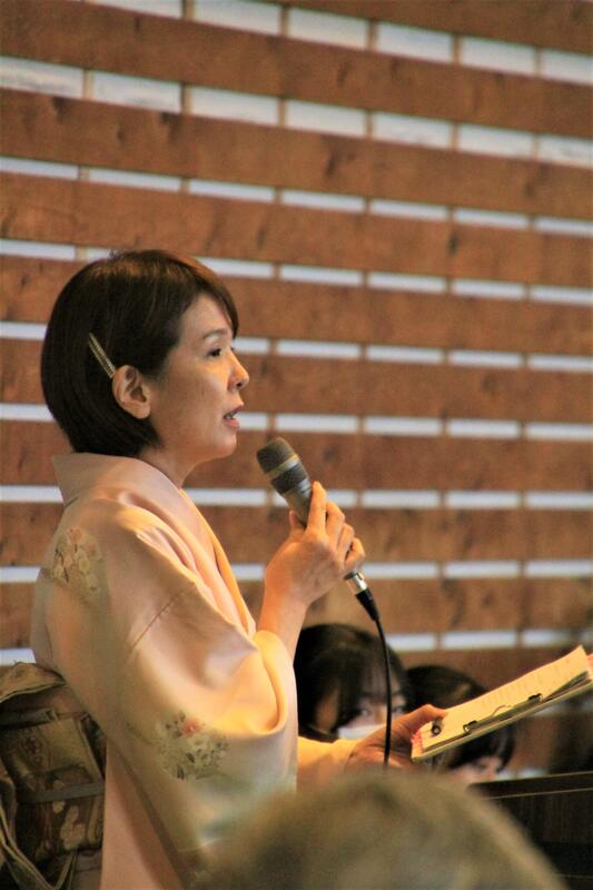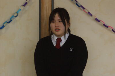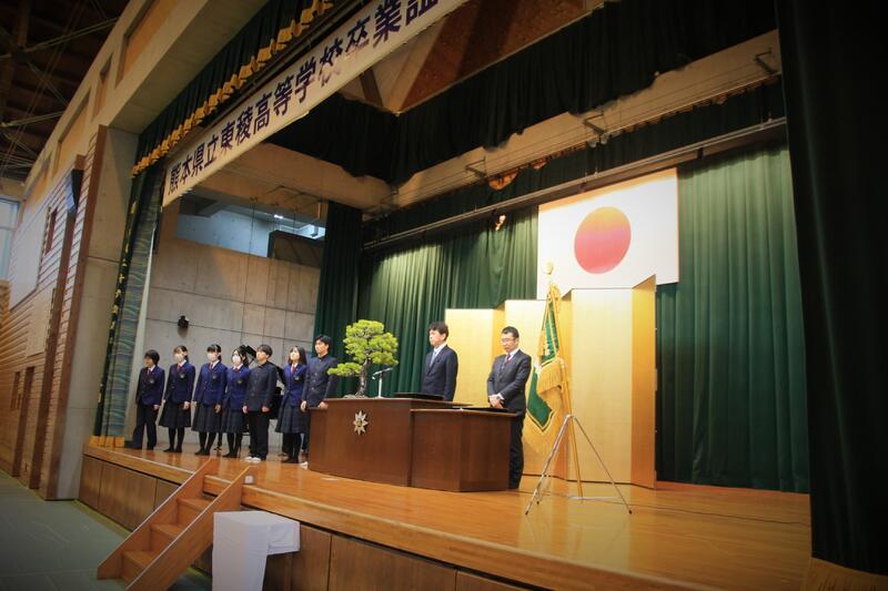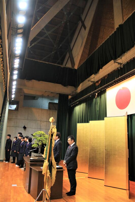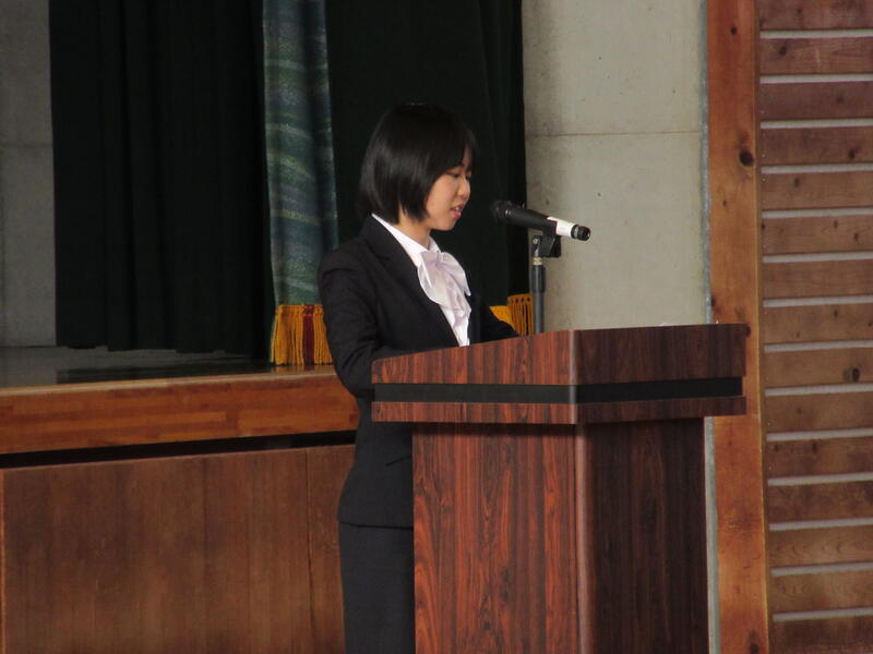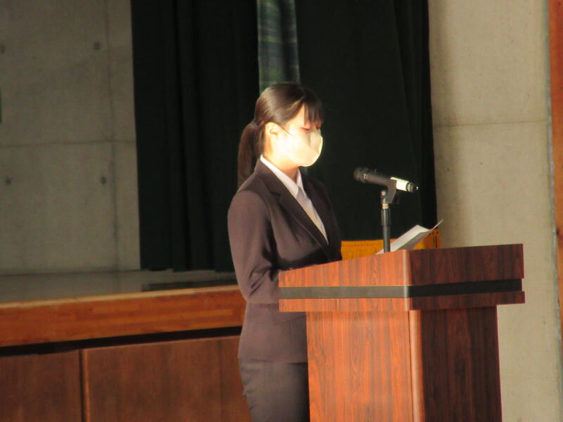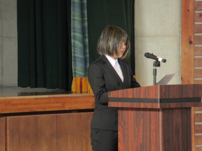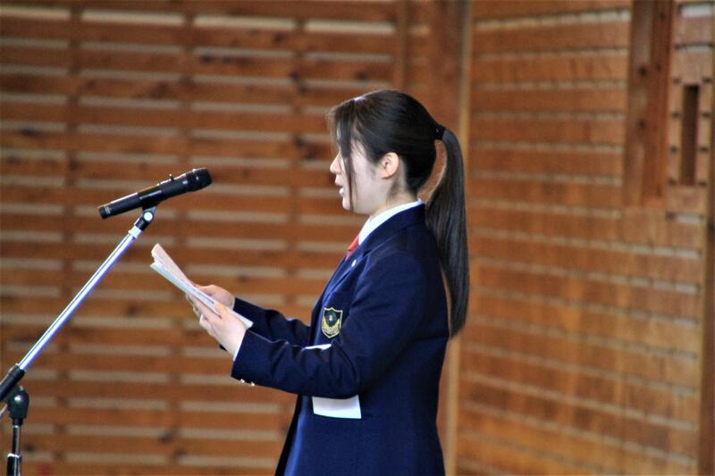 ◆校訓校歌 生徒会長須崎さんとともに校訓を斉唱し、校歌を歌いました。