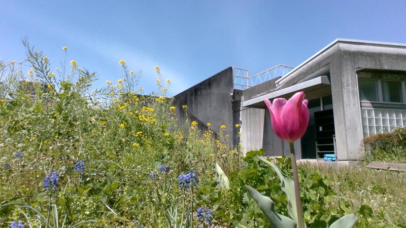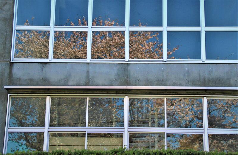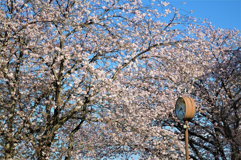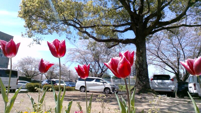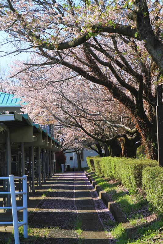3月の転・退任式の頃に満開だった桜は散り青々とした葉が風に揺れています。