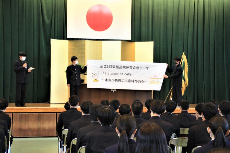 体育大会テーマ、東稜高校公認キャラクターの「とっぱにゃん」についても紹介がありました。