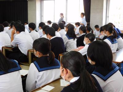 集合状況が良く、時間より早く学年集会が始まりました。2学期入ってからの高校生活を振り返りながら、中間考査が終わったこれから先の過ごし方について学年主任の先生からお話をしていただきました。
