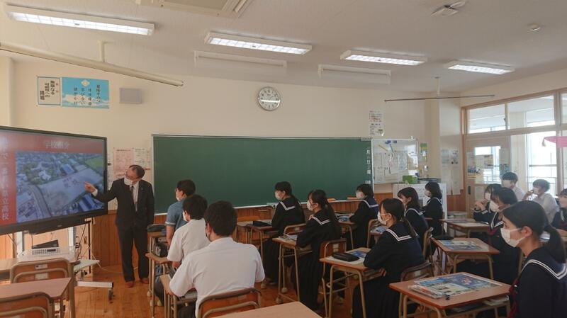 10月14日(金)菊陽中学校を訪問し、3年生に向けて、東稜高校の説明を行いました。活躍する先輩の紹介や学校の様子について、1人ひとりがうなずきながら耳を傾けて聞いていました。