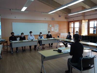 防災士の資格取得を目指す宮崎県立飯野高等学校の生徒さんたちと本校の防災委員会の生徒と協議を行いました。