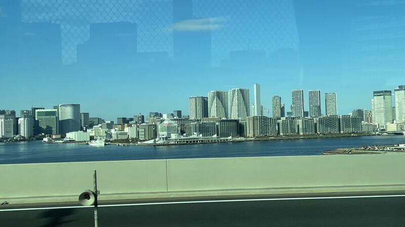 バスの車窓から見える東京の景色を楽しんでいます。ガイドさんの説明を聞きながら「わー」「おー」と言う声が聞こえます。