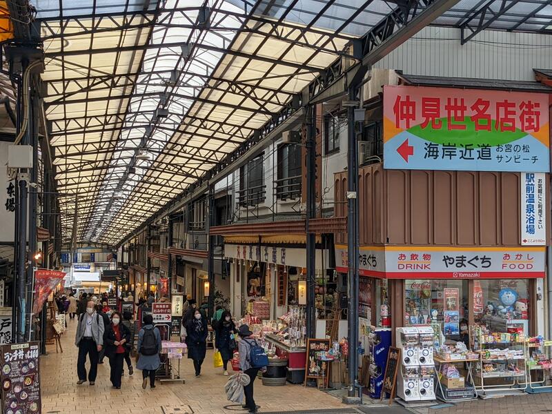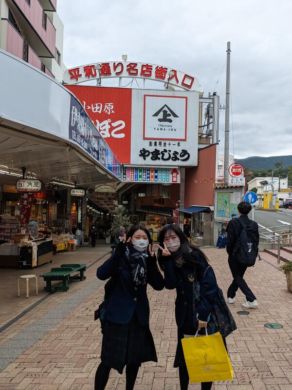 2組、6組、7組、理数の生徒は熱海商店街で昼食と買い物を楽しんでいます。