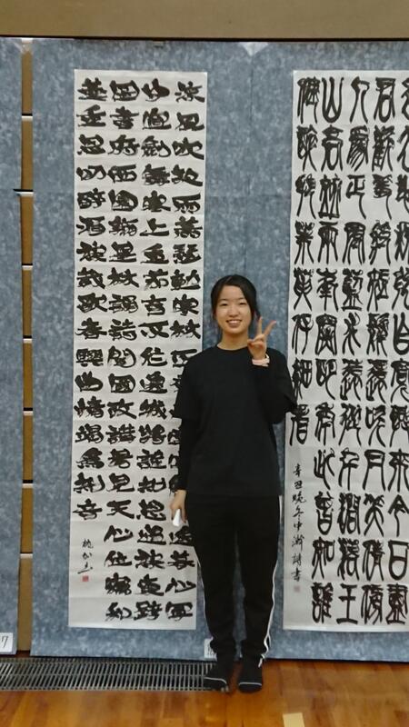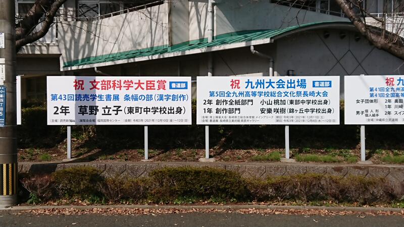 今週末、書道部の2年小山さん、1年安楽さんが長崎で行われる全九州総合文化祭での席上揮毫大会に出場し、2年草野さんは、読売学生書展の表彰式に福岡国際センターに行きます。