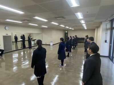 校訓校歌 生徒会長が校訓を述べ、校歌はCDを流しました