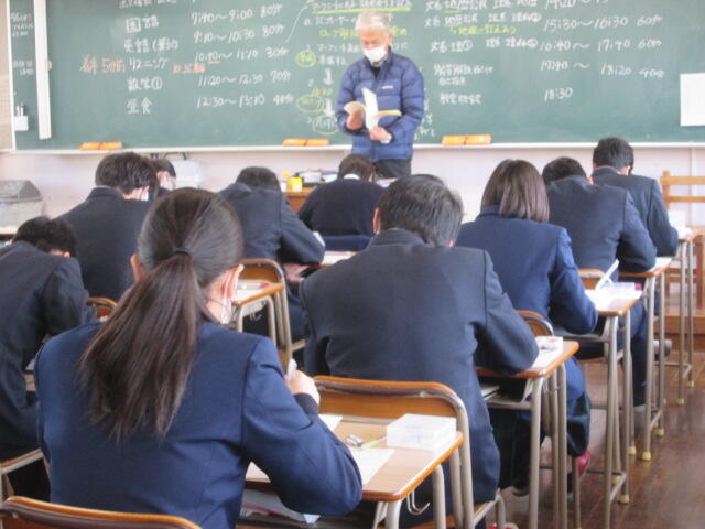 1月4日(火)3年生は冬季課外を頑張っています。本日から1月6日(木)まで課外が行われ、1月8日(土)にはパック模試が行われます。1月15日(土)~16日(日)が大学入学共通テストです。寒暖差に気をつけ健康に留意し、一日一日を大事に過ごそう。