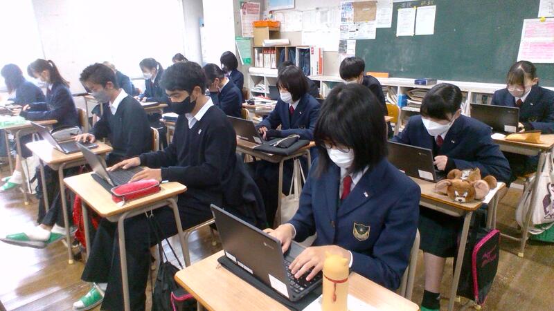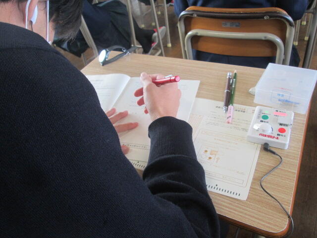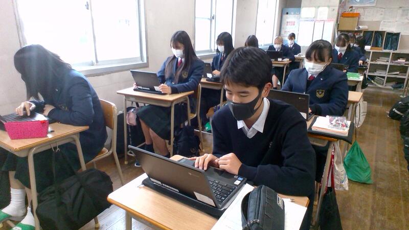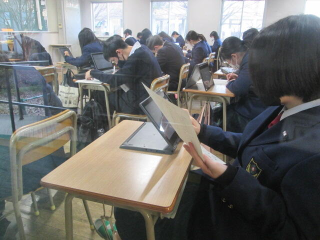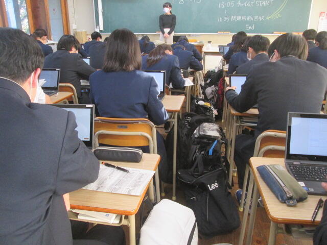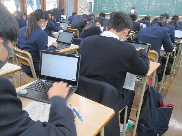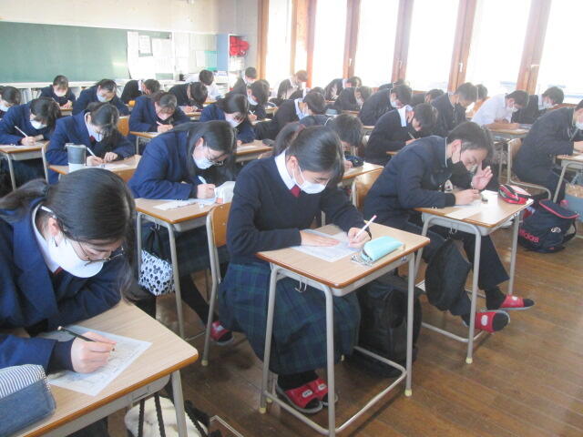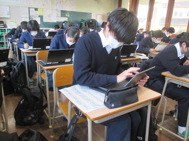 12月22日(水)全校一斉に英語のボキャブラリーコンテストを実施しました。解答時間は20分間、客観式の100問で、1、2年生はタブレット上で解答、3年生はマークシートを利用して解答しました。
