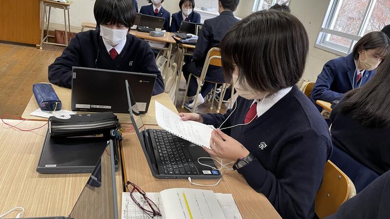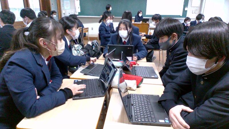 12月21日(火)、2年国際コースにおいて香港の順徳聯誼総会翁祐中学校の生徒たちと交流をしました。