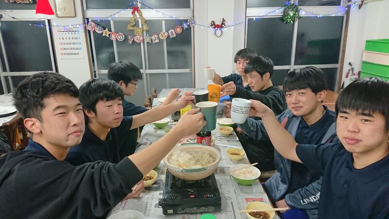 現在、寮生は28人が元気に過ごしています。今日は、鍋を囲んで特大のクリスマスケーキに舌鼓、一発芸や出し物で大いに盛り上がり、最後は校訓・校歌を斉唱し、笑顔溢れる一夜となりました。礼儀正しく、自律した生活の中に力強く成長を遂げていく頼もしい東稜生の姿が見られました。