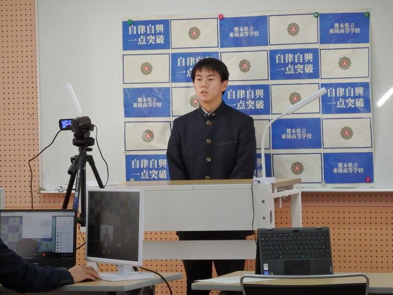 それぞれが緊張すると思いますが、東稜高校生の代表として胸を張って行ってきてください。看板も設置していただきありがとうございました。