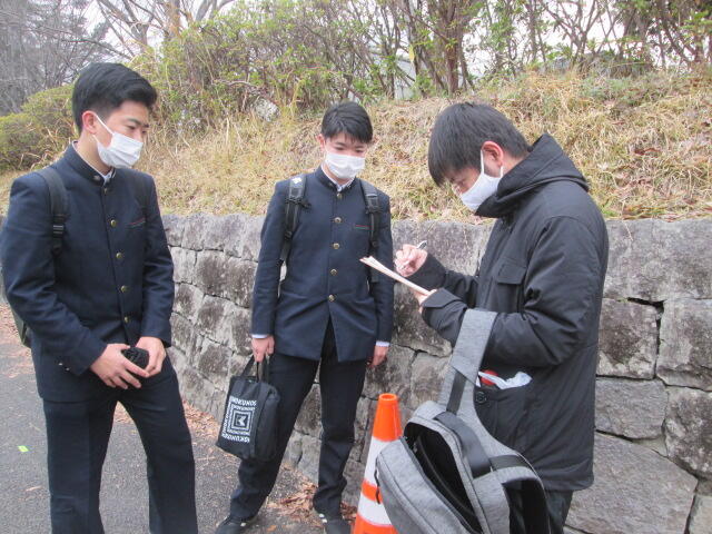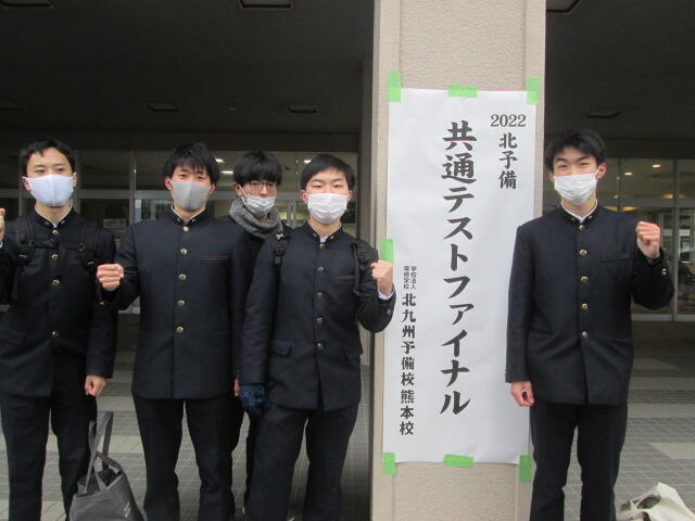 12月29日(水)~30日(木)熊本大学で共通テストファイナル(模試)が行われています。東稜高校の本番での会場と同じ熊本大学で、同じ日程で実施されています。大学構外で「点呼」を行い、各会場に入っていき、控室から受験会場に移動し、受験に臨んでいました。「最後まで粘れ!」