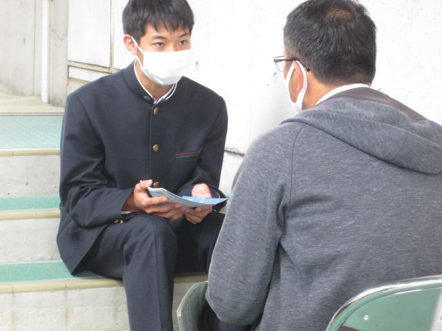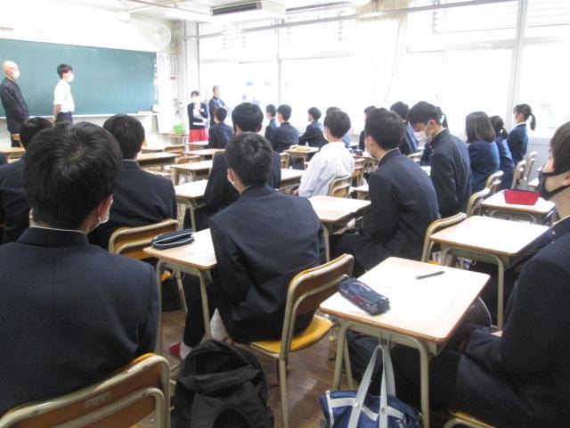「友人がいけないことをしているときに、良い方向に導く声掛けができるかが重要です。良い方向に成長できる集団であってほしい。また、今回の中間考査はチャンス。3教科で範囲も狭い。だからこそ理解できないところは質問したり、解決するよう努めましょう。」と話をしていただきました。