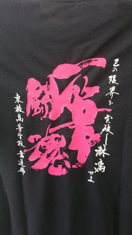 令和3年度の書道部Tシャツが完成しました。皆で文字の布置や文言を何度も練り直し、ようやく納得のいくTシャツができました。他校との交流による披露は今年は叶いませんが、紙面に向かう強い思いをTシャツに込めて、今後の揮毫大会、高書展に向かっていきたいと思います。23日には高等学校揮毫大会(各校実施)が控えています。全員で揃い錬成を継続するという難しさはありますが、それはどの学校も同じことと考え、一人一人が今できることに集中して揮毫大会に挑みたいと思います。